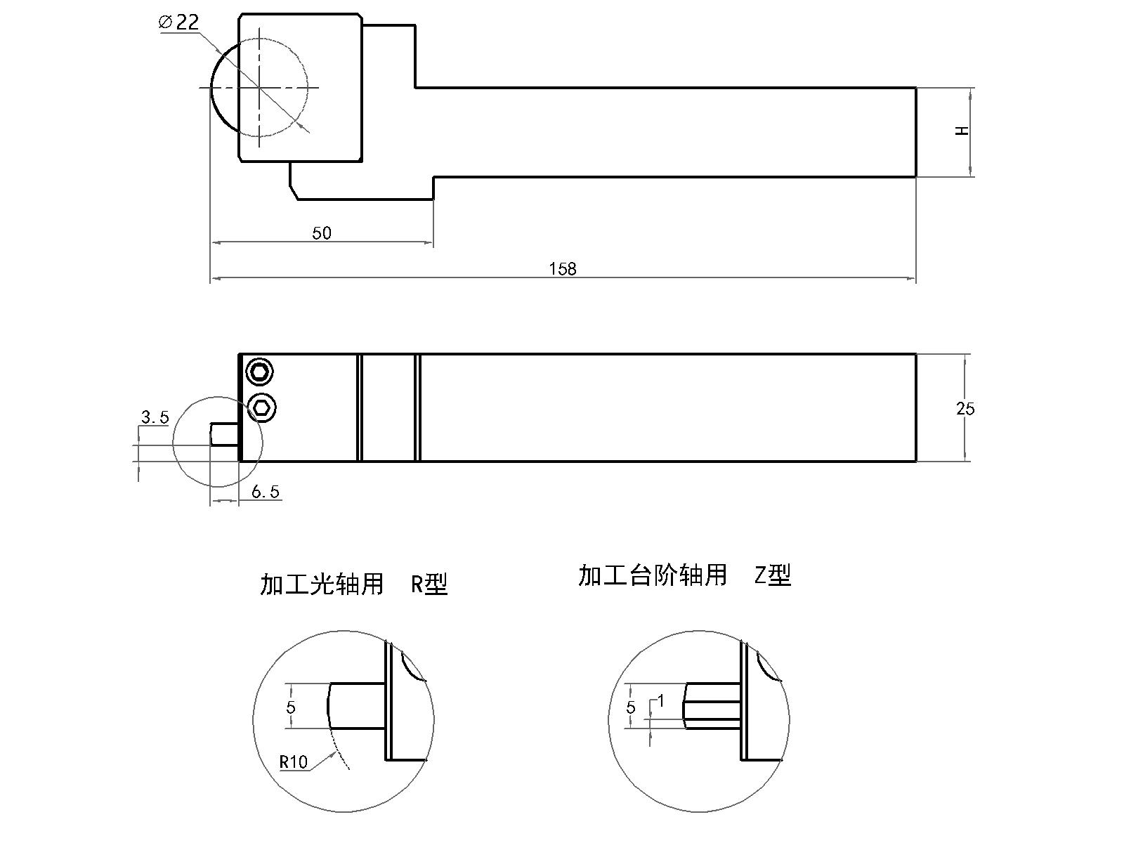 工具型號(hào) 滾輪直徑 中心高 刀桿H